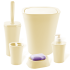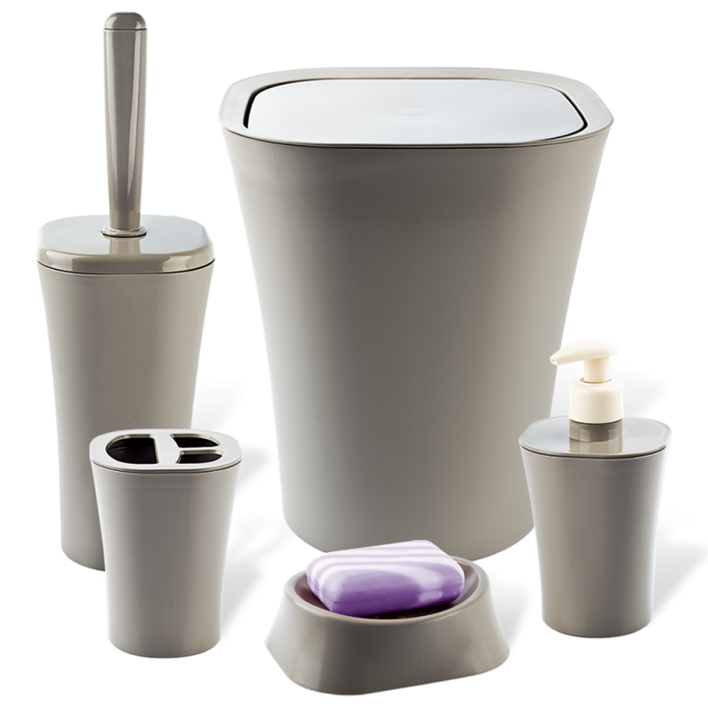 Лінійка наборів для ванної кімнати PAPILLON має сучасний дизайн в поєднанні з функціональністю і практичністю. Особливістю даної моделі є гладка, матова поверхня виробу. Разнообразная Палітра кольорів дає можливість підібрати набір під будь-який інтер'єр. Набір складається з п'яти предметів: корзина для сміття, щітка для туалету, дозатор для рідкого мила, мильниця, органайзер для зубних щіток. Кошик для сміття з поворотною кришкою, за допомогою якої не буде видно вмісту відра, що допоможе вам зробити ванну ще більш естетичною. У йоржика використана ліва різьба (при з'єднанні йоржа з ручкою, потрібно обертати йорж проти годинникової стрілки). Товар виготовлений з міцного пластику.