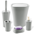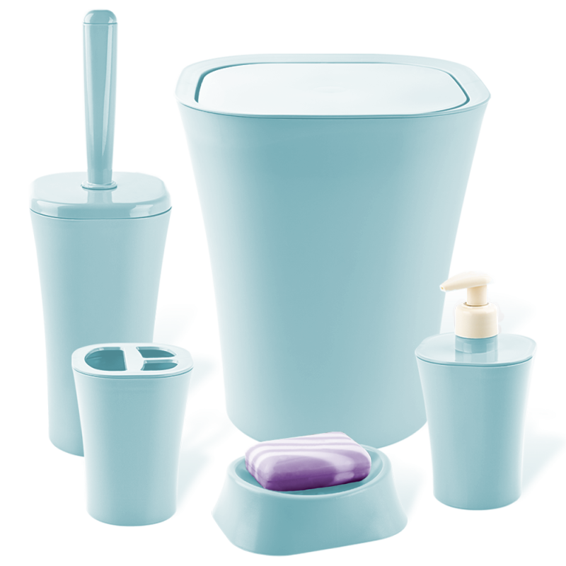 Лінійка наборів для ванної кімнати PAPILLON має сучасний дизайн в поєднанні з функціональністю і практичністю. Особливістю даної моделі є гладка, матова поверхня виробу. Разнообразная Палітра кольорів дає можливість підібрати набір під будь-який інтер'єр. Набір складається з п'яти предметів: корзина для сміття, щітка для туалету, дозатор для рідкого мила, мильниця, органайзер для зубних щіток. Кошик для сміття з поворотною кришкою, за допомогою якої не буде видно вмісту відра, що допоможе вам зробити ванну ще більш естетичною. У йоржика використана ліва різьба (при з'єднанні йоржа з ручкою, потрібно обертати йорж проти годинникової стрілки). Товар виготовлений з міцного пластику.