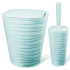 Лінійка наборів для ванної кімнати WELLE має сучасний дизайн в поєднанні з функціональністю і практичністю. Особливістю даної моделі є хвиляста структура виробу. Палітра пастельних кольорів дає можливість підібрати набір під будь-який інтер'єр. Набір складається з двох предметів, які мають квадратну форму із закругленими кутами: корзина для сміття з поворотною кришкою і щітка для туалету. У йоржика використана ліва різьба (при з'єднанні йоржа з ручкою, потрібно обертати йорж проти годинникової стрілки). Товар виготовлений з якісного пластика.