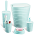 Лінійка наборів для ванної кімнати WELLE має сучасний дизайн в поєднанні з функціональністю і практичністю. Особливістю даної моделі є хвиляста структура виробу. Палітра пастельних кольорів дає можливість підібрати набір під будь-який інтер'єр. Набір складається з п'яти предметів: корзина для сміття, щітка для туалету, дозатор для рідкого мила, мильниця, органайзер для зубних щіток. У йоржика використана ліва різьба (при з'єднанні йоржа з ручкою, потрібно обертати йорж проти годинникової стрілки). Товар виготовлений з якісного пластика.