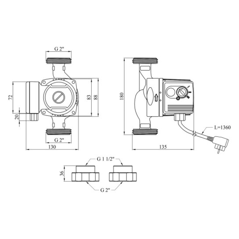 Діаметр підключення: 2 дюйма