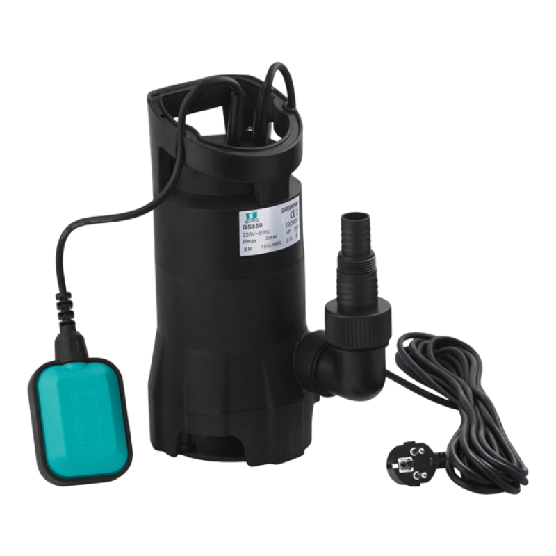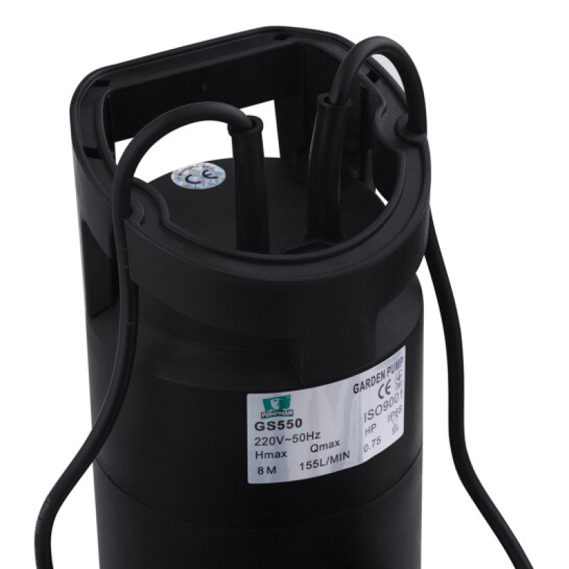 Насос дренажний Pumpman GS 550, 0,55 кВт, обладнаний вимикачем-поплавком. Відрізняється вся серія GS наявністю у корпусів виробів ніжок. Завдяки їм точка забору рідини знаходиться на деякій відстані від поверхні підлоги, наприклад, при дренажі затоплених цокольних кімнат, підвалів. Також насос використовують для подачі води з відкритих водойм, в поливних і зрошувальних системах низького тиску.
