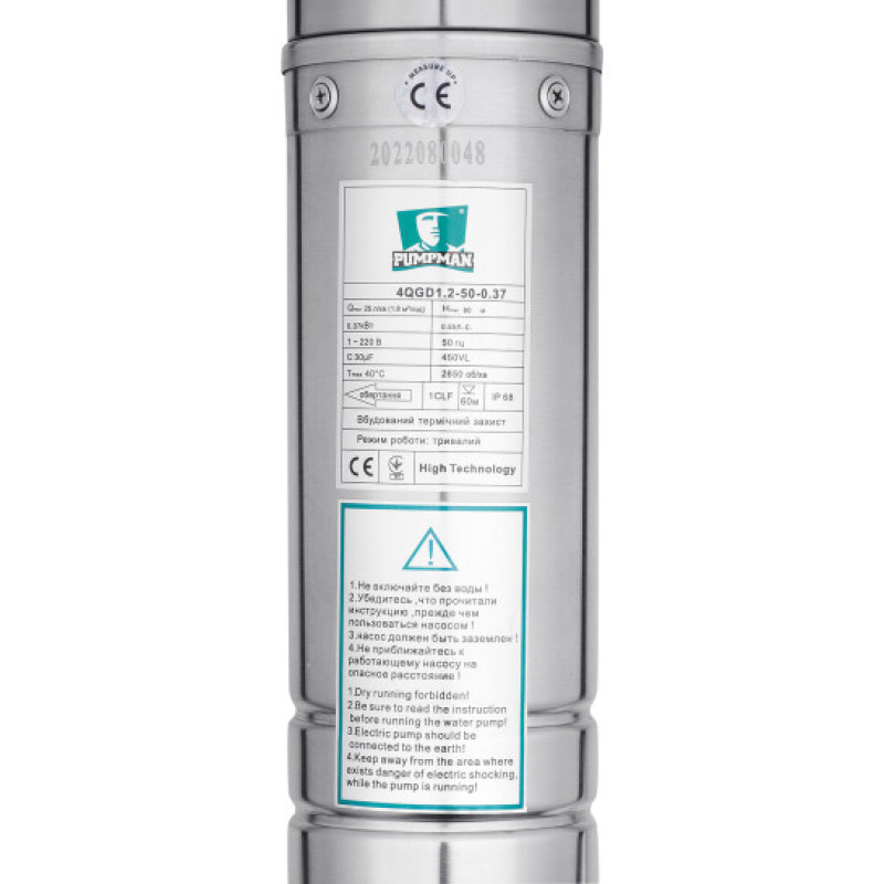 Якщо є необхідність організувати водопостачання зі свердловини (резервуара) в побуті або на виробництві можна використати насос заглибний шнековий Pumpman 4QGD 1.2-50 370 Вт. У сталевому корпусі встановлений асинхронний двигун, термозахист вбудований в обмотку. Діаметр насоса становить 4 дюйми. Пристрій може перекачувати воду (t 40 °C) з домішками піску та глини, але їх кількість не повинна перевищувати піввідсотка.