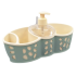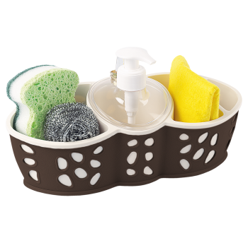 Лінійка товарів для ванної кімнати STONE має сучасний дизайн в поєднанні з функціональністю і практичністю. Особливістю даної моделі є рельєфний малюнок з переплетенням двох виробів. В органайзері є три основних відділення і одне додаткове, одне з відділень з дозатором для рідкого мила. Товар виготовлений з якісного пластика.