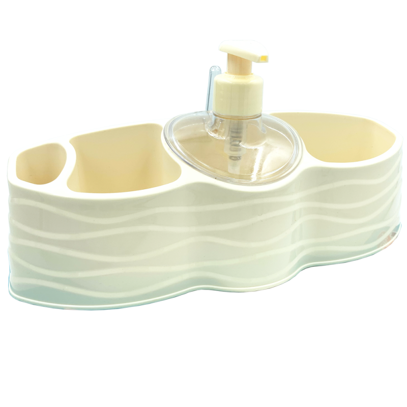 Лінійка товарів для ванної кімнати WELLE має сучасний дизайн в поєднанні з функціональністю і практичністю. Особливістю даної моделі є глянцева, хвиляста структура виробу. Пастельний колір органайзера ідеально впишеться в дизайн будь-якого інтер'єру. Є три відділення і одне додаткове з дозатором для рідкого мила. Виготовлений із пластику - матеріал гнучкий, не сприйнятливий до впливу вологи, не має власного запаху.
