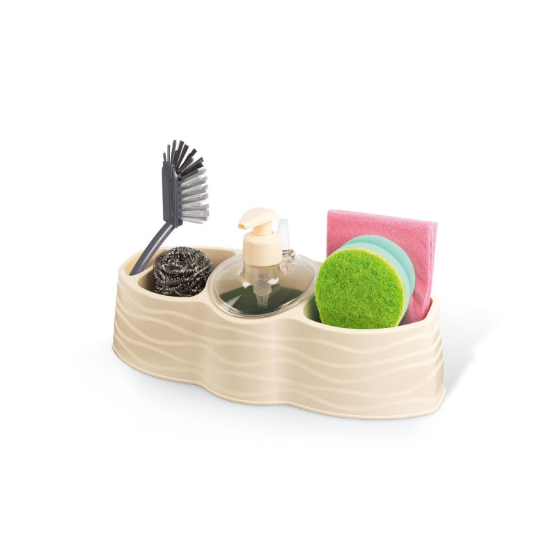 Лінійка товарів для ванної кімнати WELLE має сучасний дизайн в поєднанні з функціональністю і практичністю. Особливістю даної моделі є глянцева, хвиляста структура виробу. Пастельний колір органайзера ідеально впишеться в дизайн будь-якого інтер'єру. Є три відділення і одне додаткове з дозатором для рідкого мила. Виготовлений із пластику - матеріал гнучкий, не сприйнятливий до впливу вологи, не має власного запаху.