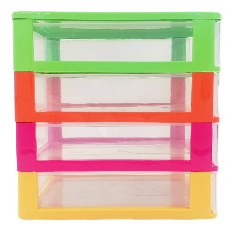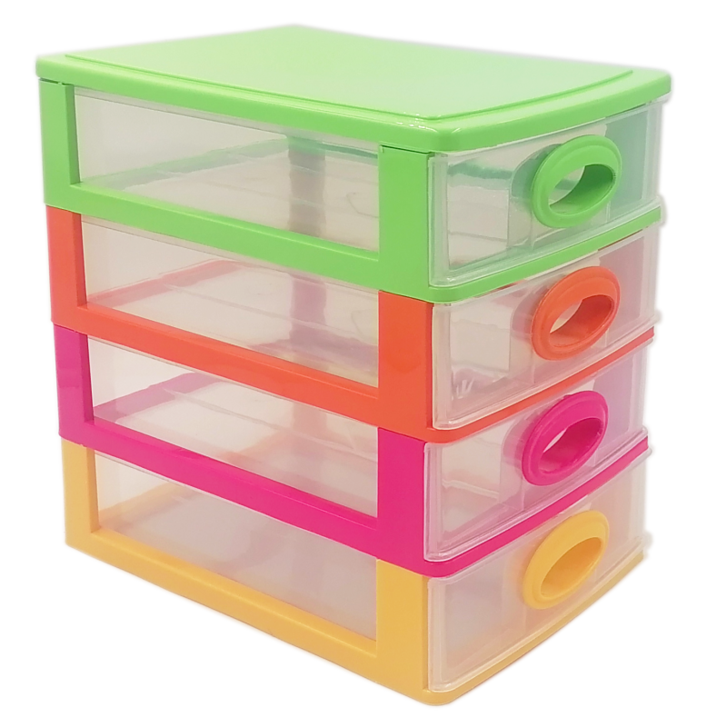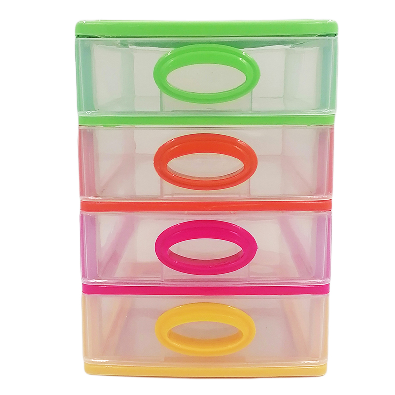 Комод-міні це відмінне рішення для компактного і зручного зберігання дрібних речей. Міні комод в спокійному забарвленні має чотири прозорі висувні секції, кожна секція виймається для зручного догляду. Виріб міцний і стійкий, виконаний з якісного пластику.