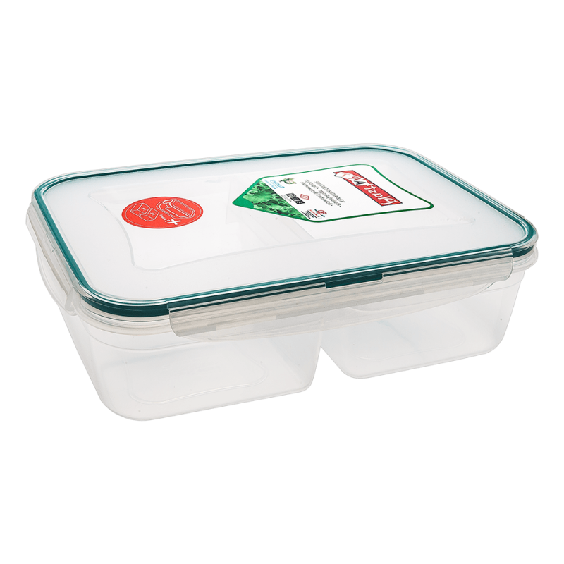 Харчовий контейнер має витончену, ергономічну форму, підходить для домашнього зберігання продуктів. Кришка герметична, не пропускає рідину і запах завдяки гумовому ущільнювачу і надійним фіксаторам. Знімні відсіки дозволяють компактно зберігати продукти не змішуючи їх. Матеріал виробу поліпропілен, найбільш безпечний з усіх видів пластику. Температурний діапазон використання від -25 до +95°С. Дозволено використовувати в мікрохвильовій печі. Можна мити в посудомийній машині. Допустима заморозка. Irak Plastik має сертифікати, які підтверджують екологічну безпеку для людини і навколишнього середовища.