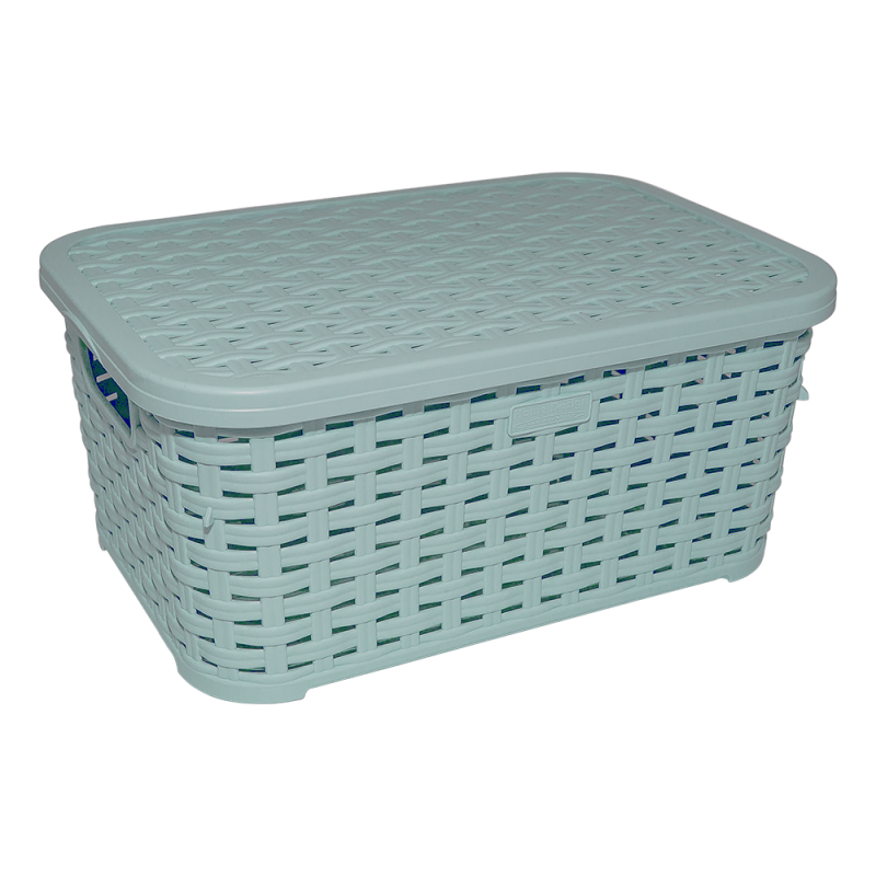 Кошик під ротанг з кришкою, прекрасно підійде для зберігання дрібних речей і продуктів, а також послужить відмінним аксесуаром для оформлення інтер'єру. Матеріал виробу (поліпропілен) безпечний при контакті з харчовими продуктами. Допускається використовувати в діапазоні температур від -25 до +95 ° C. Можна мити в посудомийній машині.