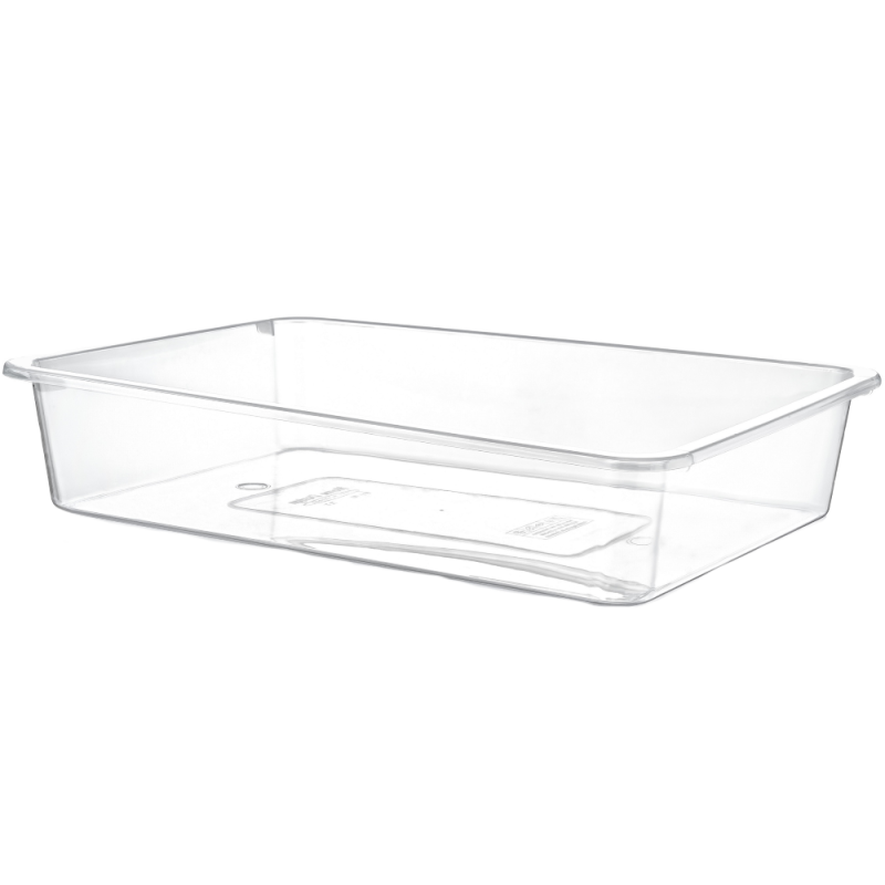 Лоток з прозорого пластика для зберігання харчових і нехарчових продуктів. Матеріал виробу міцний і еластичний не має запаху. Температурний діапазон використання від -10 до + 110°С. Дозволено використовувати в мікрохвильовій печі. Можна мити в посудомийній машині. Допустима заморозка. Irak Plastik має сертифікати, які підтверджують екологічну безпеку для людини і навколишнього середовища.