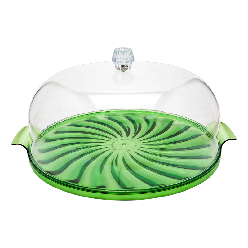 Опис і застосуванняТортовниця Кристал ідеальна для подачі і зберігання тортів або інших кондитерських виробів. Завдяки прозорій кришці, увага акцентується на вмісті. З боків є ручки для зручного перенесення. Тортовниця виготовлена ??з високоякісного, прозорого пластика безпечного для контакту з харчовими продуктами.
