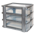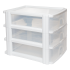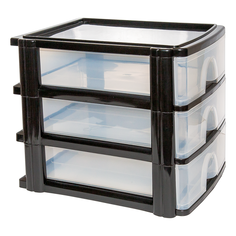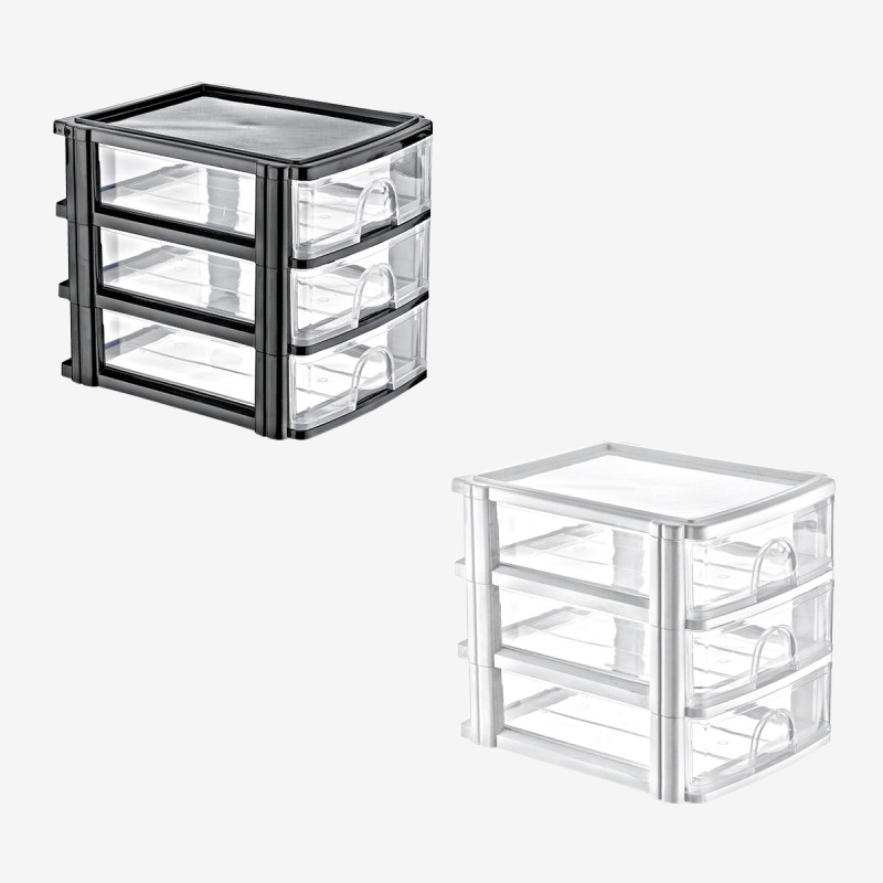 Комод-міні відмінне рішення для компактного і зручного зберігання дрібних речей . Міні комод має три прозорі висувні секції глибиною в 30 см під формат аркуша А4. Кожна секція виймається для зручного догляду. Виріб міцний і стійкий, виготовлений з якісного пластику.