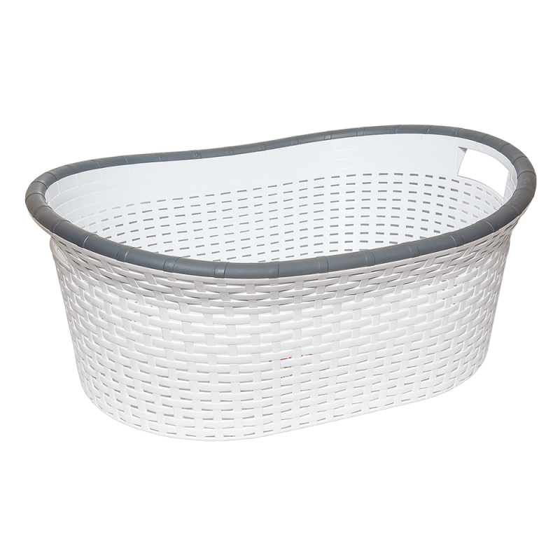 Кошик для білизни міцний і місткий, плетіння під ротанг і пастельний колір відмінно доповнять інтер'єр ванної кімнати. Зручні ручки для перенесення і гладкі внутрішні стінки забезпечать комфорт і зручність у використанні. Виріб виготовлено з високоякісного пластику і гарантовано прослужить довгі роки.