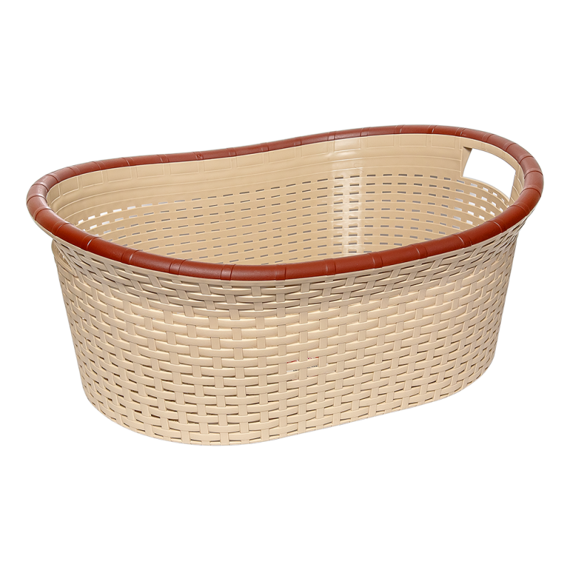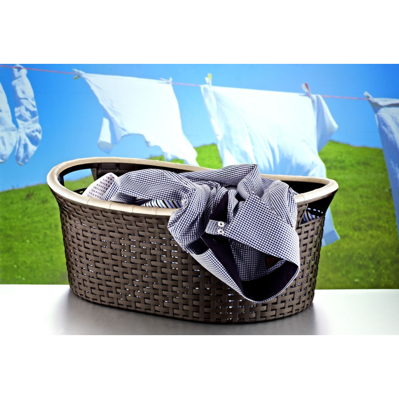 Кошик для білизни міцний і місткий, плетіння під ротанг і пастельний колір відмінно доповнять інтер'єр ванної кімнати. Зручні ручки для перенесення і гладкі внутрішні стінки забезпечать комфорт і зручність у використанні. Виріб виготовлено з високоякісного пластику і гарантовано прослужить довгі роки.