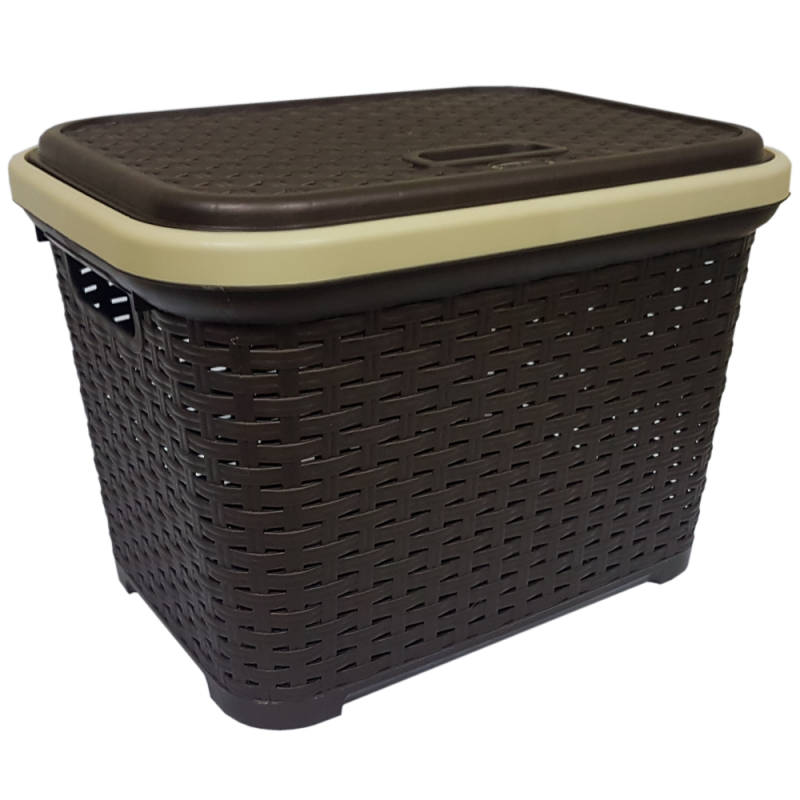 Кошик для білизни зручний і комфортний у використанні. Плетіння під ротанг дозволяє циркулювати повітрю, а кришка закриє вміст від очей. Кошик компактний, що дає можливість розмістити його у вузькому просторі. Виріб виготовлено з високоякісного пластику і гарантовано прослужить довгі роки.