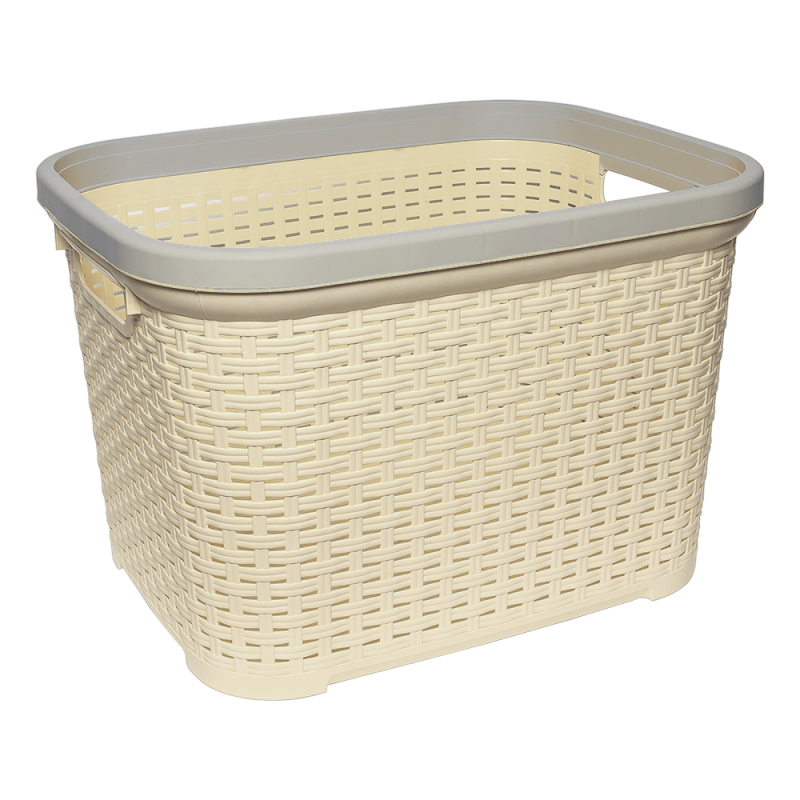Кошик для білизни міцний і місткий, плетіння під ротанг і пастельний колір відмінно доповнять інтер'єр ванної кімнати. Зручні ручки для перенесення і гладкі внутрішні стінки забезпечать комфорт і зручність у використанні. Виріб виготовлено з високоякісного пластику і гарантовано прослужить довгі роки.