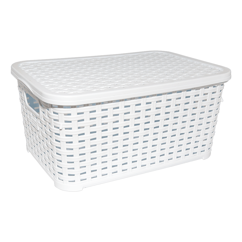 Кошик під ротанг з кришкою, прекрасно підійде для зберігання дрібних речей і продуктів, а також послужить відмінним аксесуаром для оформлення інтер'єру. Матеріал виробу (поліпропілен) безпечний при контакті з харчовими продуктами. Допускається використовувати в діапазоні температур від -25 до +95 ° C. Можна мити в посудомийній машині.