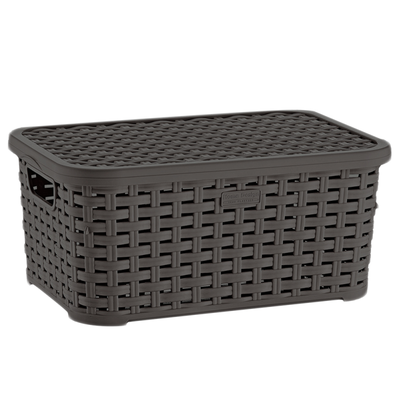 Кошик під ротанг з кришкою, прекрасно підійде для зберігання дрібних речей і продуктів, а також послужить відмінним аксесуаром для оформлення інтер'єру. Матеріал виробу (поліпропілен) безпечний при контакті з харчовими продуктами. Допускається використовувати в діапазоні температур від -25 до +95 ° C. Можна мити в посудомийній машині.