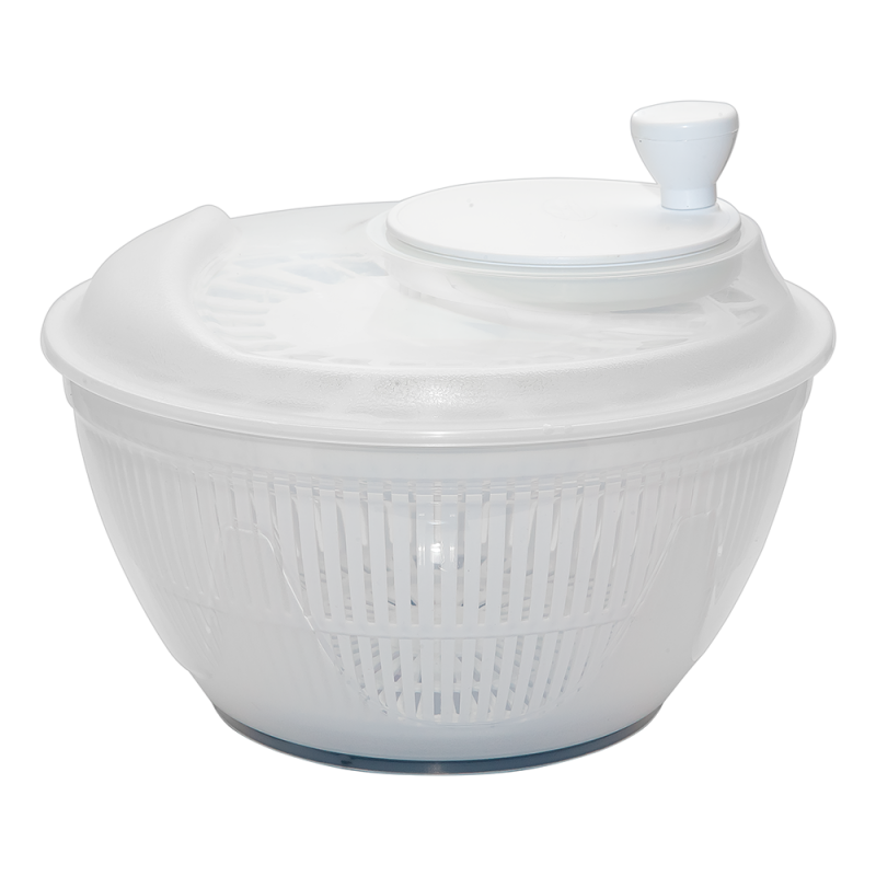 Промийте листя салату, овочі або ягоди і розмістіть їх усередині кошика. Наповніть кошик водою наполовину, розмістіть всередині фрукти і овочі, міцно візьміть і поверніть рукоятку для початку обертання. Вилийте воду і прокрутіть ще раз. Прозорий контейнер можна використовувати як миску для салату. Кошик також можна використовувати для просушування гарячої пасти, чищеного картоплі і т.п.