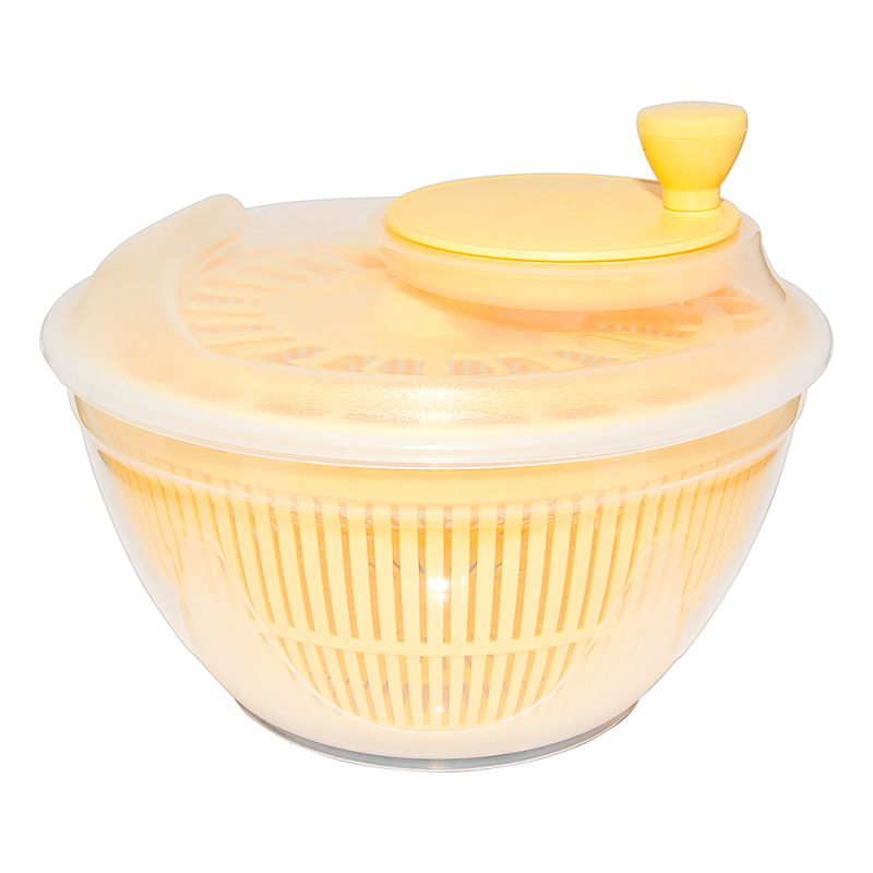 Промийте листя салату, овочі або ягоди і розмістіть їх усередині кошика. Наповніть кошик водою наполовину, розмістіть всередині фрукти і овочі, міцно візьміть і поверніть рукоятку для початку обертання. Вилийте воду і прокрутіть ще раз. Прозорий контейнер можна використовувати як миску для салату. Кошик також можна використовувати для просушування гарячої пасти, чищеного картоплі і т.п.