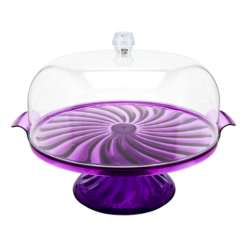 Опис і застосуванняТортовниця на ніжці Кристал ідеальна для подачі і зберігання тортів або інших кондитерських виробів. Завдяки прозорій кришці, увага акцентується на вмісті. Така тортовниця не тільки додасть сервіровці вишуканість, але і підносячись над столом, залишить місце і для інших десертів. З боків є ручки, для зручного перенесення. Виготовлена з високоякісного, прозорого пластика безпечного для контакту з харчовими продуктами. Висота тортівниці без ніжки 17 см.