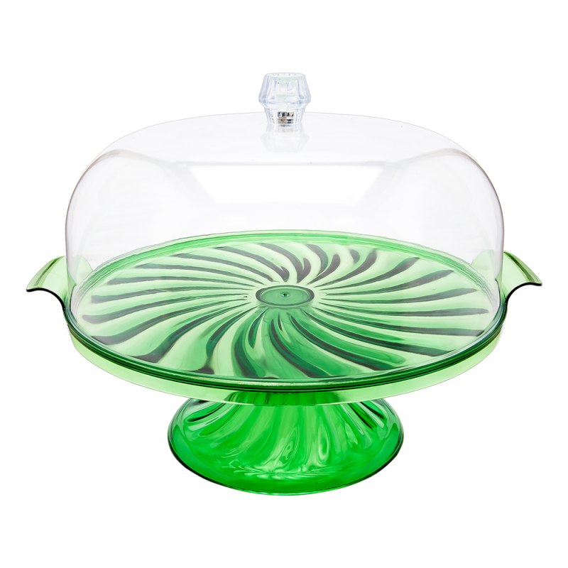 Опис і застосуванняТортовниця на ніжці Кристал ідеальна для подачі і зберігання тортів або інших кондитерських виробів. Завдяки прозорій кришці, увага акцентується на вмісті. Така тортовниця не тільки додасть сервіровці вишуканість, але і підносячись над столом, залишить місце і для інших десертів. З боків є ручки, для зручного перенесення. Виготовлена з високоякісного, прозорого пластика безпечного для контакту з харчовими продуктами. Висота тортівниці без ніжки 17 см.