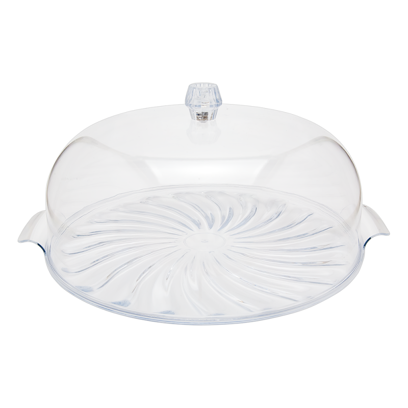 Тортовниця Кристал ідеальна для подачі і зберігання тортів або інших кондитерських виробів. Завдяки прозорій кришці, увага акцентується на вмісті. З боків є ручки для зручного перенесення. Тортовниця виготовлена ??з високоякісного, прозорого пластика безпечного для контакту з харчовими продуктами.