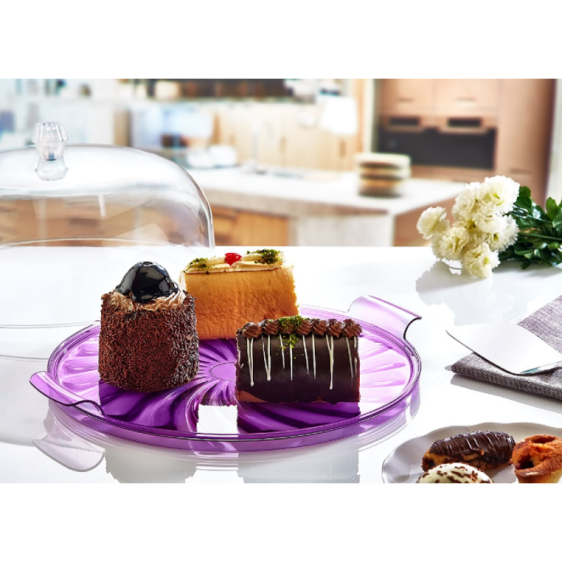 Тортовниця Кристал ідеальна для подачі і зберігання тортів або інших кондитерських виробів. Завдяки прозорій кришці, увага акцентується на вмісті. З боків є ручки для зручного перенесення. Тортовниця виготовлена із високоякісного, прозорого пластика безпечного для контакту з харчовими продуктами.