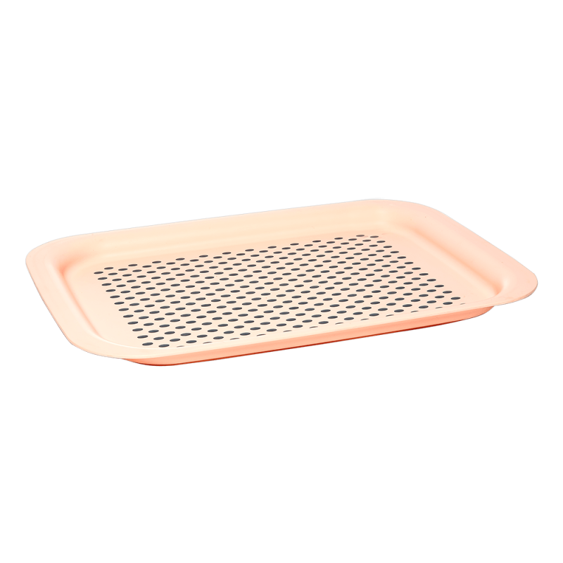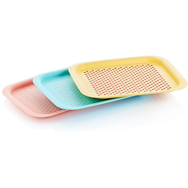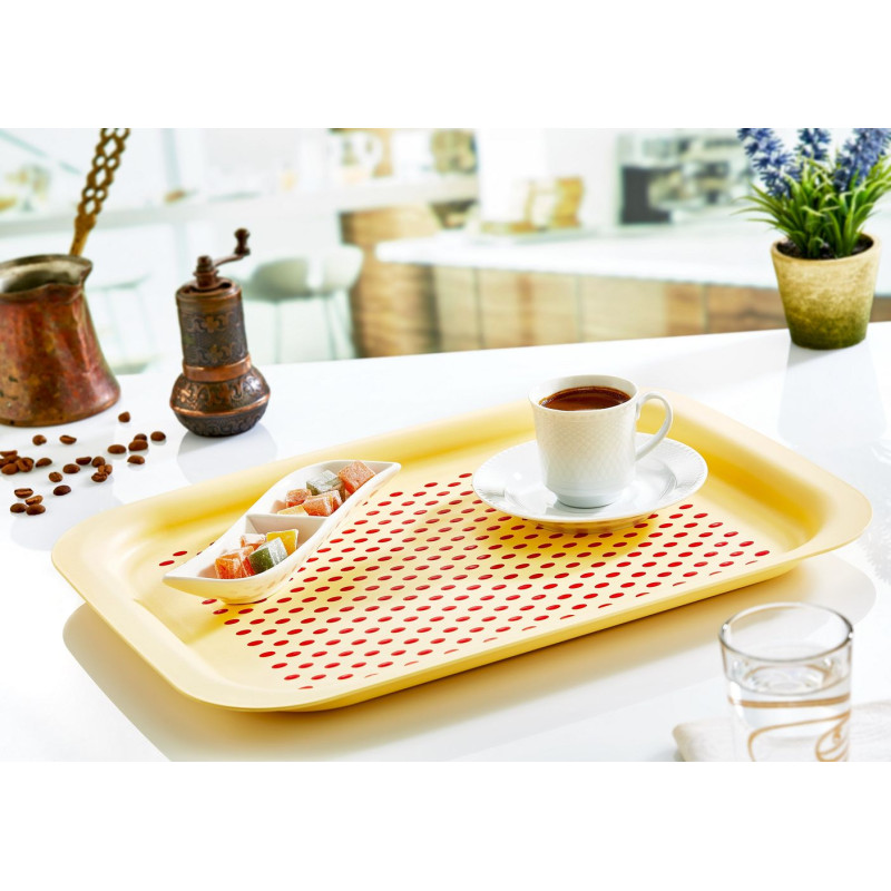 Піднос Irak Plastik з гумовими вставками, перешкоджає зісковзуванню предметів при перенесенні. Також гумові вставки є на зворотному боці. Виготовлений з високоякісного пластику, має приємний колір і зручні габарити.