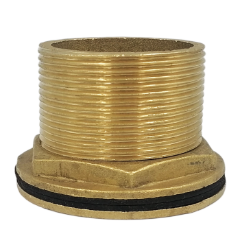 Штуцер латунний з підтискною гайкою для врізки в ємність. Штуцер- це втулка із зовнішнім різьбленням для кріплення трубопроводу або запірної арматури (кран і т.п.). Різьбова частина розділена на частину з різьбленням лівої (для підтискної гайки) і правої для приєднання запірної арматури на виході з ємності, додатково комплектується гумовими прокладками для герметизації. Для перекриття зливу, можна поставити заглушку. Штуцер може бути встановлений в будь-якому місці ємності за винятком ребер і вигинів.