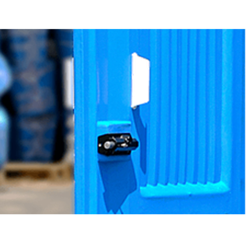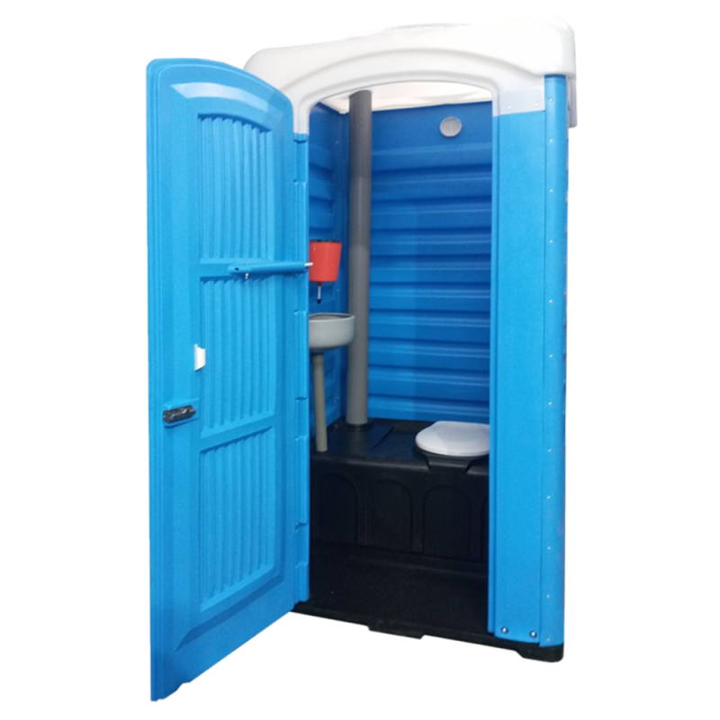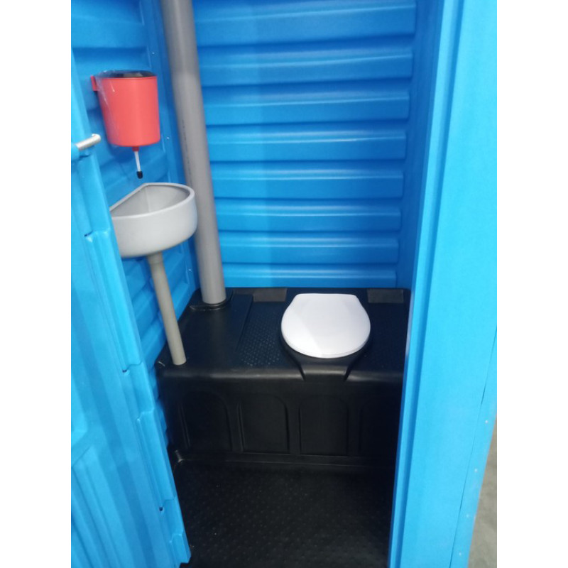 - Комфортна комплектація — в постачання входять поліетиленова раковина (умивальник), тримач для паперу, гачок для одягу або сумки, замок із ключем і внутрішня засувка