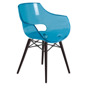 Яскравим акцентом в інтер'єрі вітальні, спальні, дитячої кімнати або обідньої зони стане дизайнерське крісло Opal-Wox. Його можна використовувати також при обладнанні робочого кабініу, офісу. Ергономічна модель зі зручними сидінням і спинкою напівкруглої форми забезпечить комфортну посадку. Опорний блок стільця складається з чотирьох конусних ніжок, виготовлених з масиву натурального дерева бук. На ніжках закріплені перехрещені між собою металеві стрижні. Безшовне, прозоре крісло, виготовлене з полікарбоната- міцного матеріалу, стійкого до подряпин, механічних пошкоджень, вологи. Ніжки оснащені поліуретановими заглушками. Крісло рекомендується використовувати виключно в приміщенні.