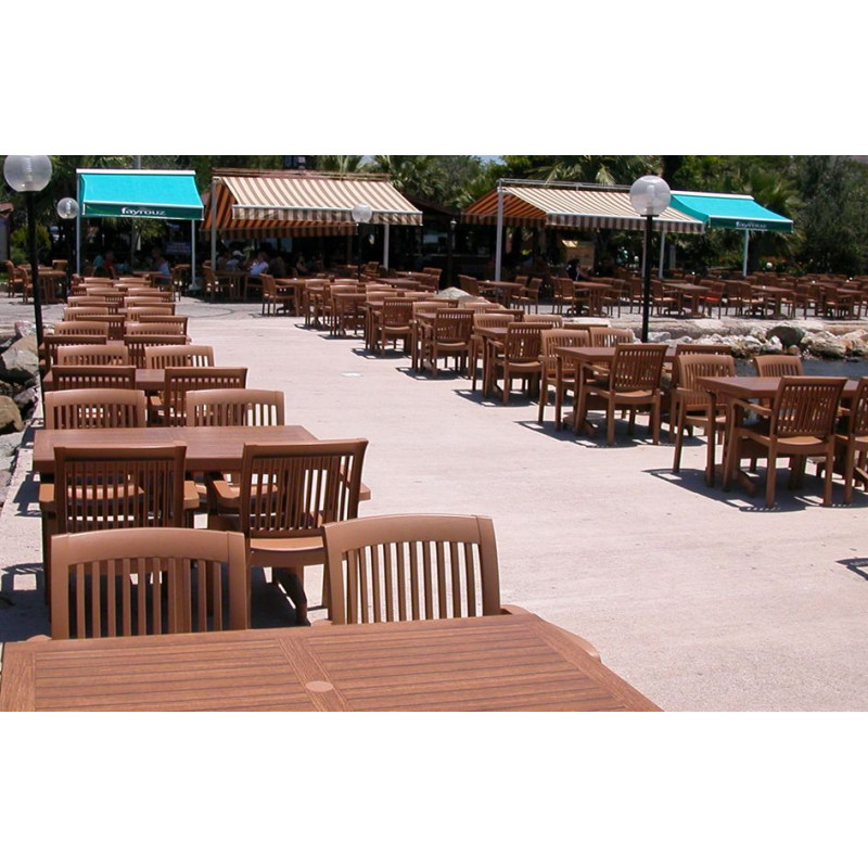 Містраль- універсальне і практичне крісло з покриттям що імітує текcтуру дерева, прикрасить садову ділянку або літню терасу заміського будинку. Висока спинка і широке сидіння забезпечують комфорт і зручність в процесі використання. Завдяки моноблочній конструкції і високій якості матеріалів виріб збереже відмінний зовнішній вигляд і бездоганну якість протягом усього терміну служби. Крісло виготовлено з поліпропілену, стійкий до дії вологи, УФ-випромінювання, до перепадів температур. Призначено для використання як усередині приміщення, так і на вулиці. Штабельований.