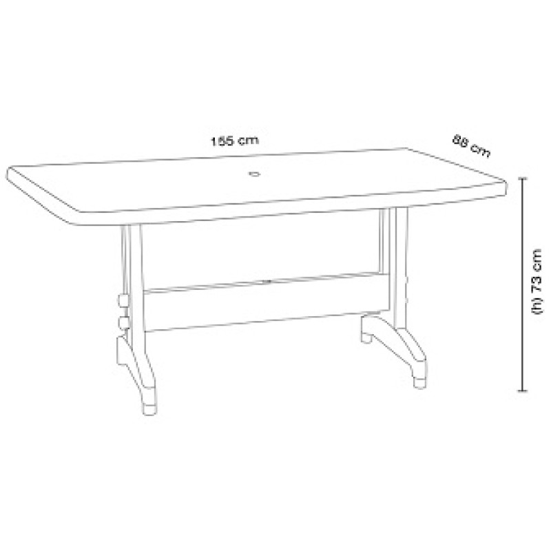 Стіл Prestige 88x155 створений для великих сімей і дружніх компаній, за ним зручно можуть розташуватися шість чоловік. Ідеальний для застосування на садовій ділянці, а також буде доречний на відкритій терасі літнього кафе. Стіл міцний і стійкий, ніжки з регулюванням висоти і протиковзкими заглушками. У конструкції столу передбачено отвір для установки парасольки, закрите заглушкою. Матеріал вироби поліпропілен, матеріал стійкий до низьких і високих температур, вологи, УФ-випромінювання. Збереже відмінний зовнішній вигляд і бездоганну якість протягом усього терміну служби. Підходить для використання всередині приміщення і на вулиці.