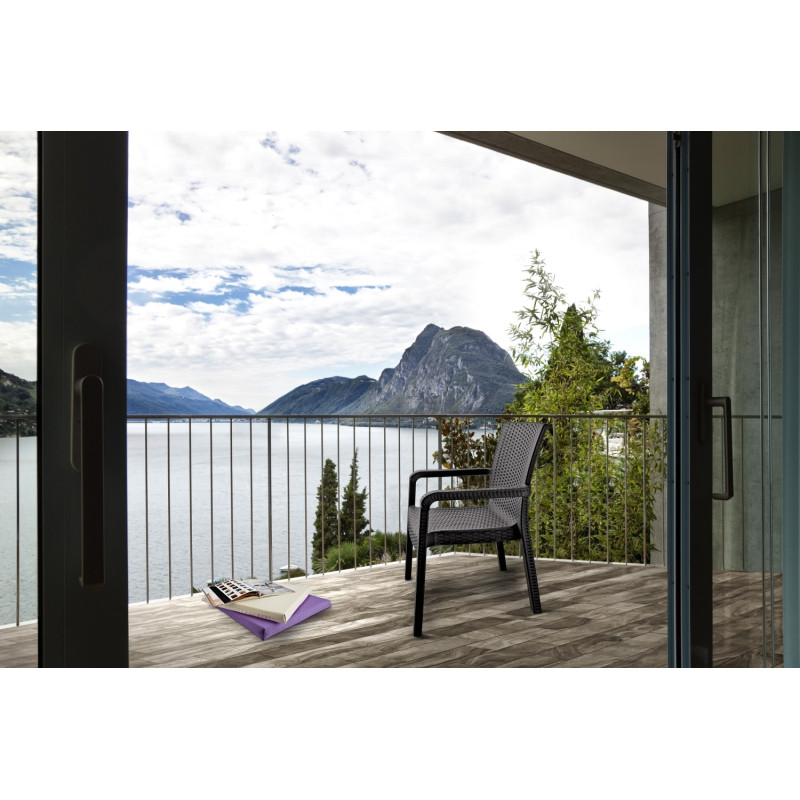 Крісло Markiz з імітацією плетіння «під ротанг» прикрасить садову ділянку або літню терасу вашого будинку. Зручна конструкція моделі, пружне і жорстке сидіння, надійні підлокітники і стійкі ніжки забезпечують комфорт і безпеку під час сидіння. Крісло має високу міцність, ніжки оснащені поліуретановими заглушками. Виріб можна використовувати як в приміщенні, так і на вулиці: воно стійке до впливу вологи, УФ-випромінювання, до перепадів температури. Зберігає відмінний зовнішній вигляд і бездоганну якість протягом усього терміну служби. Крісла легко штабелюються.