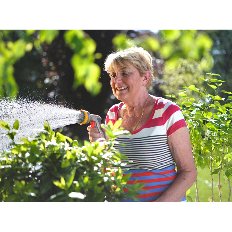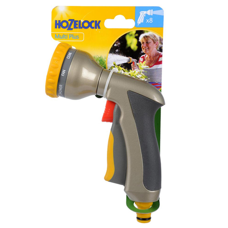 Пістолет - розпилювач Multy Plus HoZelock. Багатофункціональний пістолет з литим металевим корпусом - неймовірно міцний, зручний та ергономічний. Підходить для поливу рослин і очищення поверхні від забруднень. Зручний курок з покриттям "soft touch"; додатковий регулятор для керування потужністю струменя великим пальцем (від 50% до 100% сили потоку). Напір води регулюється плавним натисканням на курок. Для тривалого безперервного поливу передбачений механізм фіксації курка на 100% і 40% сили потоку, що значно мінімізує навантаження на Вашу руку. Вісім типів розпилення: конус для тонкого поливу; потужний струмінь для очищення; плоский струмень; тонка троянда для щадного поливу; плоска для змивання мила з автомобілів; тонка – туман для саджанців; душ для м'якого потоку; центральний потік для чищення.
