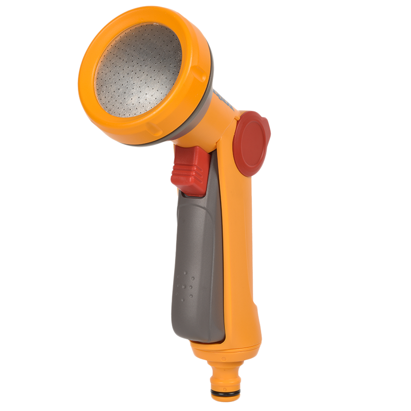 Пістолет - розпилювач Rose-Gun Hozelock. Компактний і простий у використанні пістолет для поливу. Управляється однією рукою. Має регулювання сили потоку, яка дозволяє заощадити до 50% води. Пістолет - розпилювач з одним типом розпилення - м'який струмінь-душ. Передній курок із покриттям Soft-Touch, додатковий регулятор для керування потужністю струменя великим пальцем (від 50% до 100% сили потоку). Натиск води регулюється плавним натисканням на курок. Для тривалого безперервного поливу передбачено механізм фіксації курка, який мінімізує навантаження на Вашу руку. Курок виготовлений із пластику з покриттям "soft-touch", завдяки чому пістолет комфортно тримати в руці. Високоякісні матеріали надають пристрою максимальної міцності.