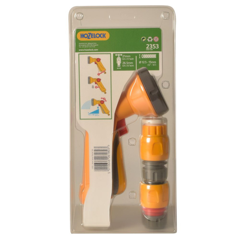У набір входять: Пістолет - розпилювач Rose- Gun (2672), Конектор для крана з зовнішньою різьбою 1/2" - 21 мм и 3/4" - 26,5 мм (2184), Конектор для шланга Класик d12,5 - 15 мм (2070), Конектор для шланга з Аквастоп d12,5 - 15 мм (2075).