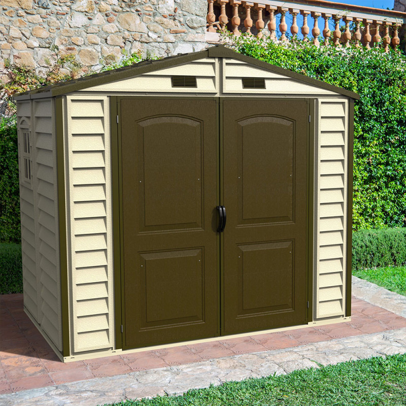 Опис і застосуванняБрак місця під зберігання на садовій ділянці знайома всім нам не з чуток. Пластиковий сарай для самостійної збірки, прекрасно впорається з цим завданням. Діючи відповідно до інструкції, новенький сарай порадує вас через 4-5 годин роботи. Міцний і зносостійкий не боїться перепадів температур, прослужить вам довгі роки.