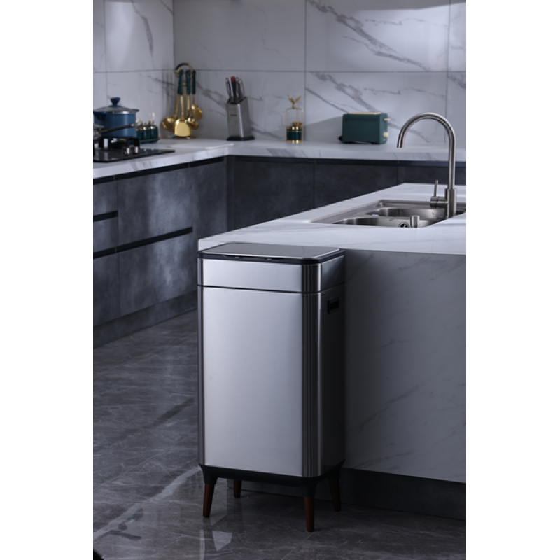 Преміальне сенсорне відро JAH на ніжках — це ідеальне поєднання сучасного дизайну, функціональності та комфорту. Завдяки сенсорній технології, кришка відкривається миттєво, реагуючи на легкий рух руки, що забезпечує гігієнічне використання без дотику. Зручна конструкція на ніжках робить його більш ергономічним — більше не потрібно нахилятися, викидайте сміття на комфортній висоті. Корпус виготовлений з високоякісної нержавіючої сталі, стійкої до плям і корозії, що гарантує довговічність і охайний зовнішній вигляд. Вбудована система знезараження допомагає підтримувати чистоту та усувати неприємні запахи всередині відра, забезпечуючи ідеальну чистоту.