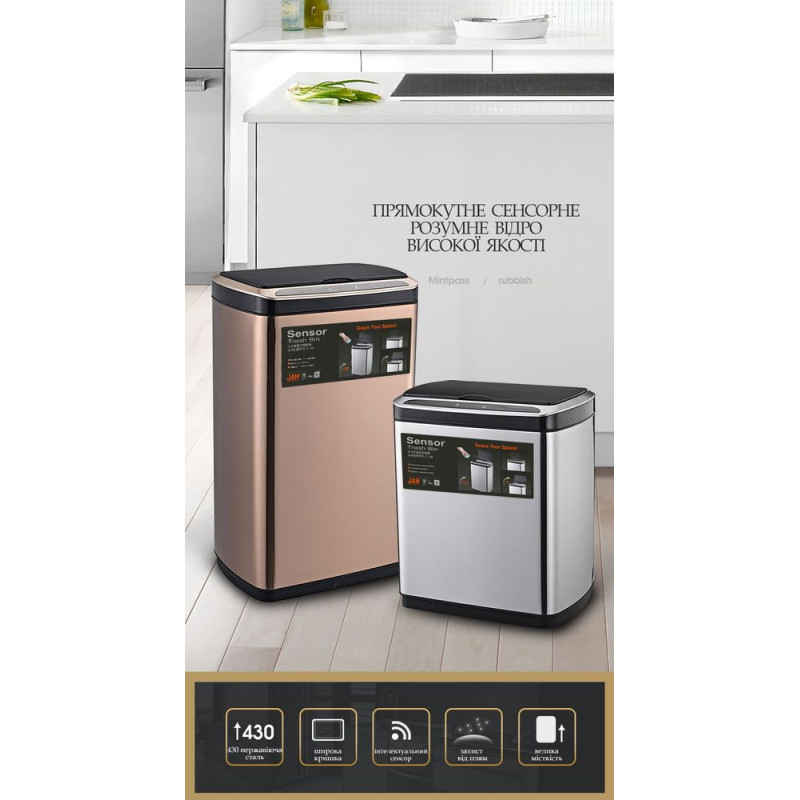 Інноваційне сенсорне відро JAH - ідеальне поєднання стилю та зручності. Це не просто відро для сміття, а ваш новий помічник у створенні комфортного і гігієнічного простору. Лише легкий помах руки і кришка відкриється автоматично. Елегантний дизайн із корпусом з нержавіючої сталі преміум-класу стане справжньою окрасою вашого інтер'єру!