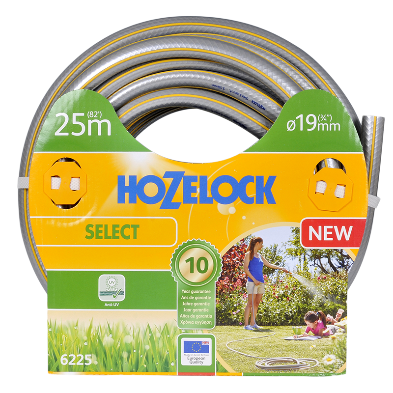 Шланг d19 мм 25 м Select HoZelock. Міцний та гнучкий садовий шланг, що складається з 4-х шарів. Удосконалена технологія захисту від ультрафіолету та низьких температур. Витримує тиск до 20 бар. Чотири шари: гладкий внутрішній шар для забезпечення максимального струму води; товстий шар з ПВХ, що забезпечує міцність стінок шлангу, полегшує вагу та покращує маневреність; плетене армування для запобігання розтягуванню; зовнішній шар із ПВХ для захисту від пошкоджень, виготовлений за технологією Ergo Rib, завдяки якій шланг комфортно тримати у руці. Матеріали, з яких складається шланг, є безпечними для людини та навколишнього середовища – не містять фталатів, важких металів та шкідливих токсинів.