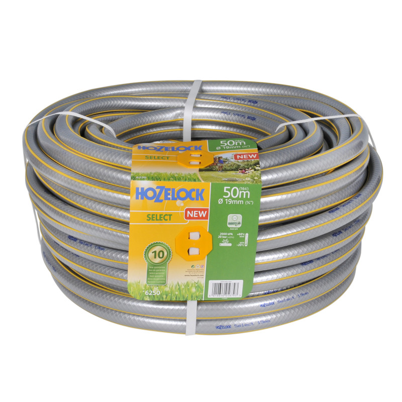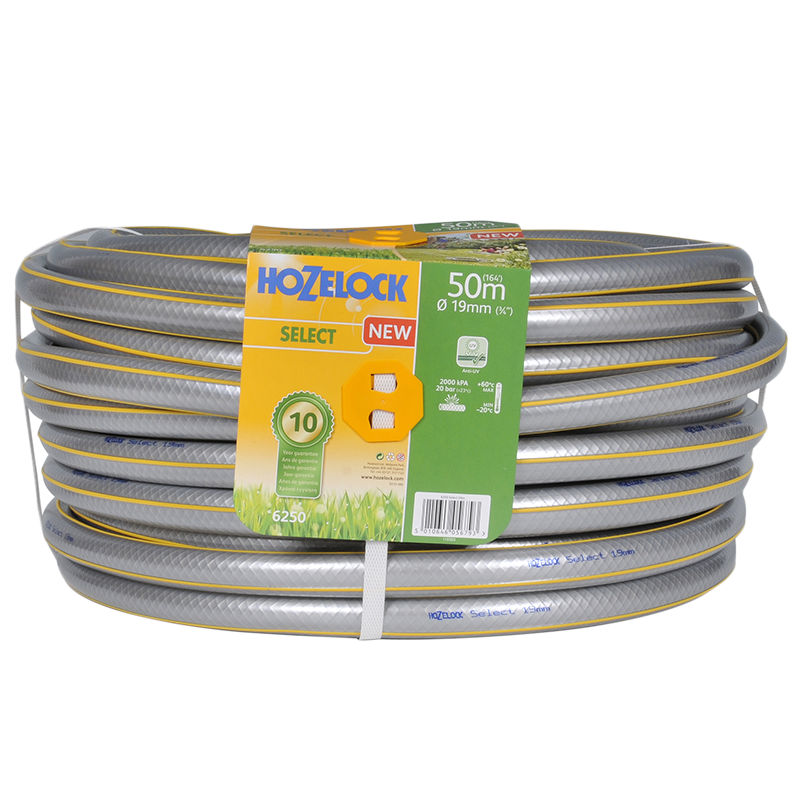 Шланг d19 мм 50 м Select HoZelock. Міцний та гнучкий садовий шланг, що складається з 4-х шарів. Удосконалена технологія захисту від ультрафіолету та низьких температур. Витримує тиск до 20 бар. Чотири шари: гладкий внутрішній шар для забезпечення максимального струму води; товстий шар з ПВХ, що забезпечує міцність стінок шлангу, полегшує вагу та покращує маневреність; плетене армування для запобігання розтягуванню; зовнішній шар із ПВХ для захисту від пошкоджень, виготовлений за технологією Ergo Rib, завдяки якій шланг комфортно тримати у руці. Матеріали, з яких складається шланг, є безпечними для людини та навколишнього середовища – не містять фталатів, важких металів та шкідливих токсинів.