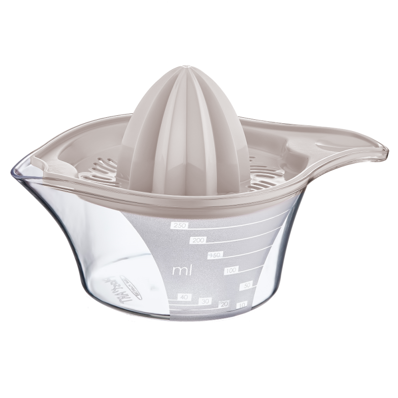 Ручний соковитискач призначений для отримання натурального соку з цитрусових. Складається з 2-х частин: верхня частина - насадка з конусом для віджимання соку та отворами для проціджування, нижня частина - ємність для збору свіжого соку з мірною шкалою до 250 мл. Є зручна ручка та носик для переливання. Соковитискач простий в експлуатації та догляді. Матеріал виробу пластик. Допустиме заморожування до -25°С. Irak Plastik має сертифікати, що підтверджують екологічну безпеку для людини та довкілля.