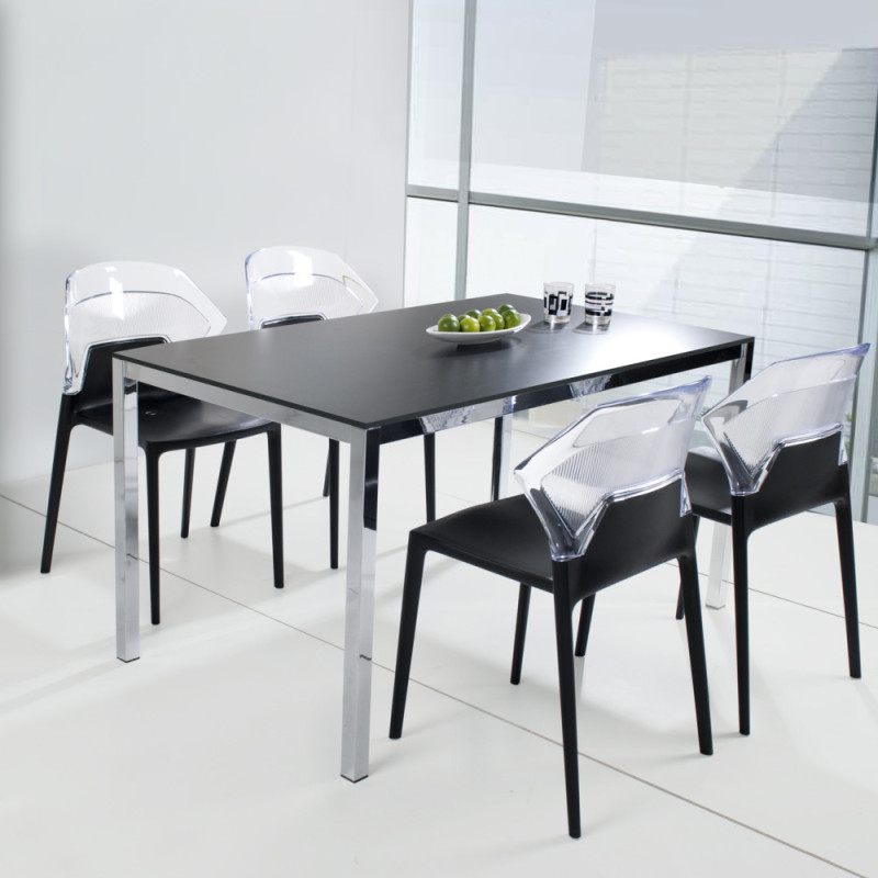 Витончений і стильний стіл Idea з чорної стільницею, припаде до смаку поціновувачам стилю мінімалізм. Стіл міцний і стійкий, каркас покритий хромом. Матеріал виробу поліпропілен, стійкий до низьких і високих температур, вологи, УФ-випромінювання. Збереже відмінний зовнішній вигляд і бездоганну якість протягом усього терміну служби. Рекомендується для використання всередині приміщення.