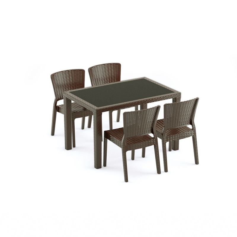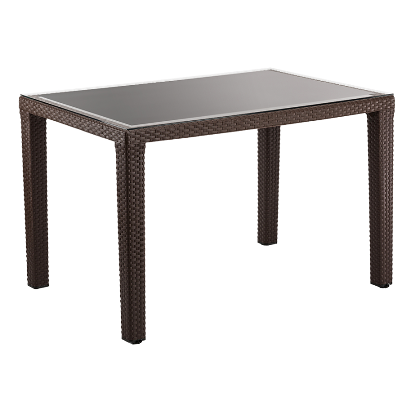 Надійний стіл Antares від виробника професійної меблів Tillia. Стільниця столу накрита розпеченим склом. Каркас металевий, плетіння під ротанг з високоякісного поліпропілену, армованого скловолокном. Алюмінієвий профіль під столешнею, забезпечує додаткову міцність і стійкість. Висота і ухил столу регулюються, це дозволяє рівно встановити стіл на будь-яку поверхню. Матеріали виробу стійкі до природних опадів, перепадів температур, впливу УФ випромінювання. Призначений для використання на вулиці і в приміщенні. Стіл чудово поєднується з кріслами і стільцями Royal і Antares.