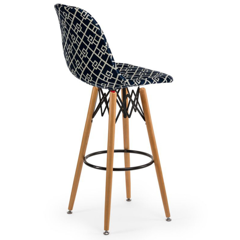 Стілець Eos-V Bar Pad відрізняється елегантним поєднанням різних тканин. EOS це нова надихаюча марка поп-арт культури, підходить для використання практично в будь-якому місці. Барний стілець ідеально підходить для будинку, їдальні. Конусні міцні ніжки виготовлені з масиву натурального дерева бук з оригінальними металевими опорами, є зручна кільцева перекладина для ніг.