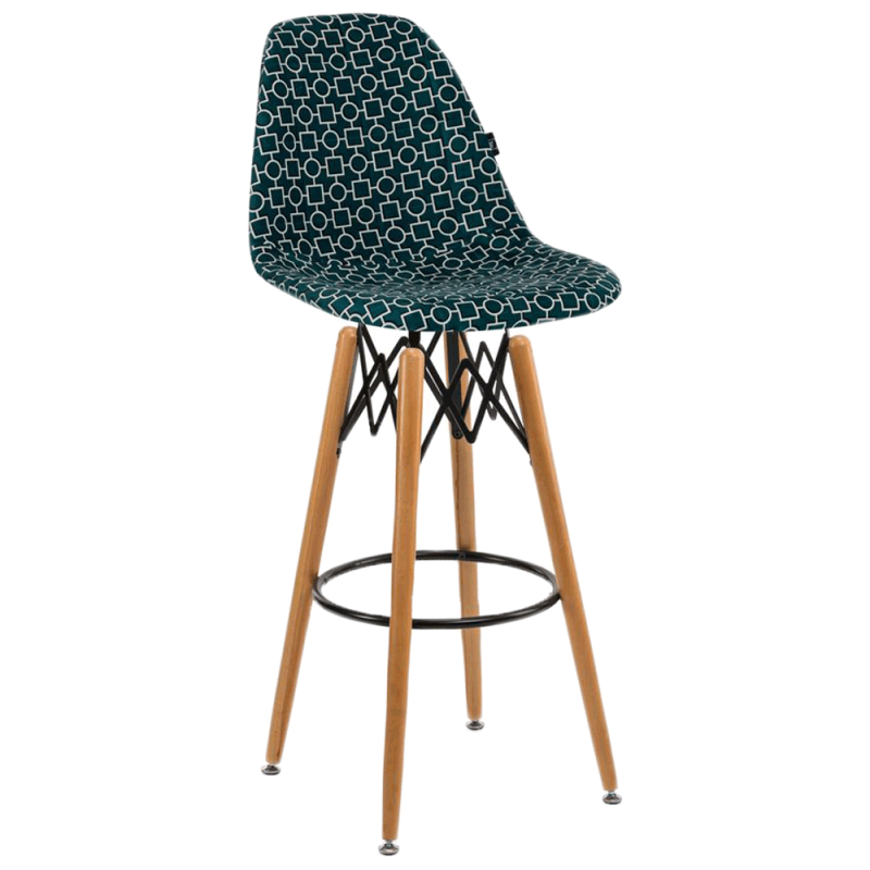 Стілець Eos-V Bar Pad відрізняється елегантним поєднанням різних тканин. EOS це нова надихаюча марка поп-арт культури, підходить для використання практично в будь-якому місці. Барний стілець ідеально підходить для будинку, їдальні. Конусні міцні ніжки виготовлені з масиву натурального дерева бук з оригінальними металевими опорами, є зручна кільцева перекладина для ніг.