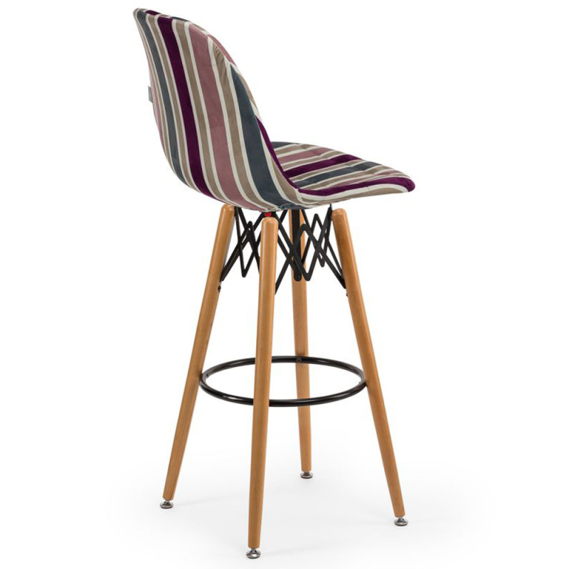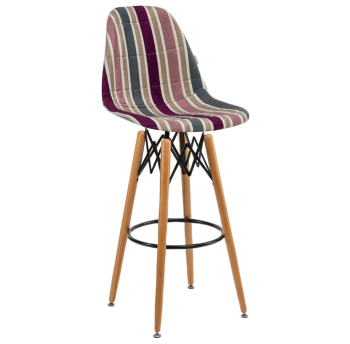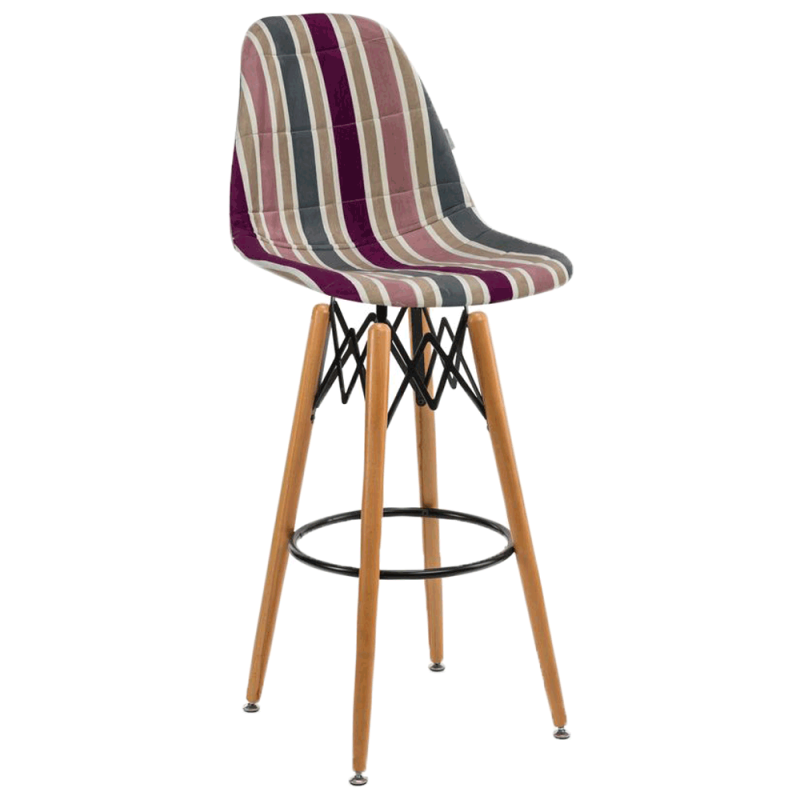 Стілець Eos-V Bar Pad відрізняється елегантним поєднанням різних тканин. EOS це нова надихаюча марка поп-арт культури, підходить для використання практично в будь-якому місці. Барний стілець ідеально підходить для будинку, їдальні. Конусні міцні ніжки виготовлені з масиву натурального дерева бук з оригінальними металевими опорами, є зручна кільцева перекладина для ніг.