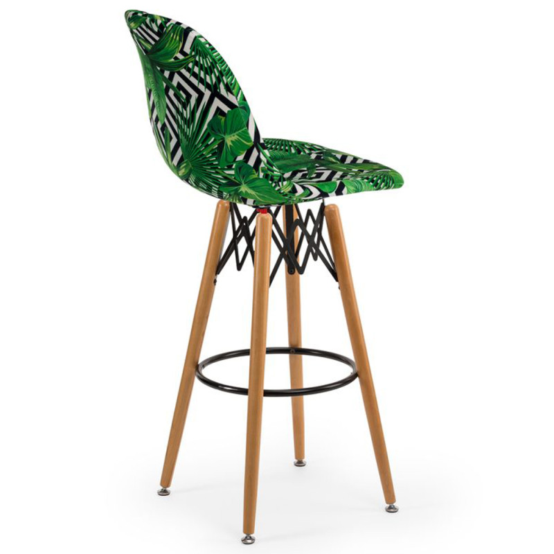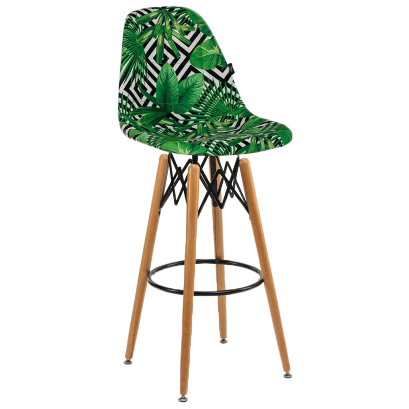Стілець Eos-V Bar Pad відрізняється елегантним поєднанням різних тканин. EOS це нова надихаюча марка поп-арт культури, підходить для використання практично в будь-якому місці. Барний стілець ідеально підходить для будинку, їдальні. Конусні міцні ніжки виготовлені з масиву натурального дерева бук з оригінальними металевими опорами, є зручна кільцева перекладина для ніг.